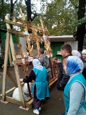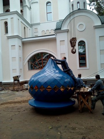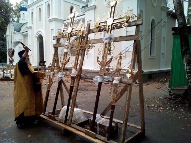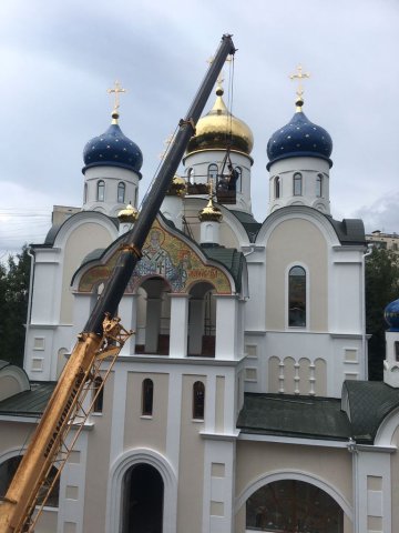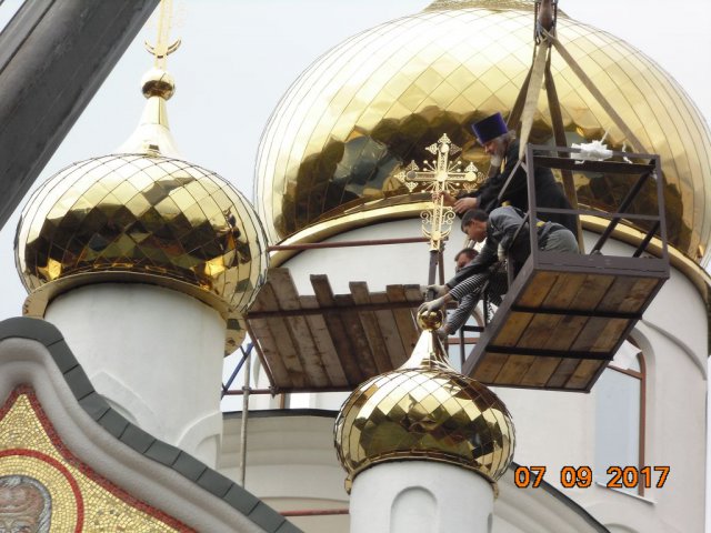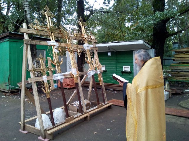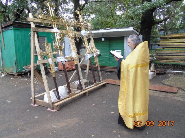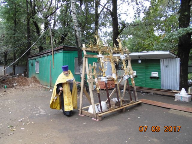 Освящение и установка крестов для малых куполов храма
