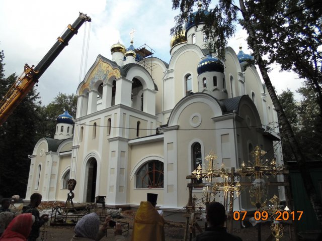 7 сентября 2017 года, в четверг 14-й седмицы по Пятидесятнице, настоятель храма святителя Николая Мирликийского в Бирюлеве, протоиерей Виталий Тогубицкий освятил пять крестов для малых куполов нового храма и после установки куполов установил крест на звоннице. Таким образом, на сегодняшний день на строительной площадке полностью завершен цикл работ по установке всех куполов и крестов.